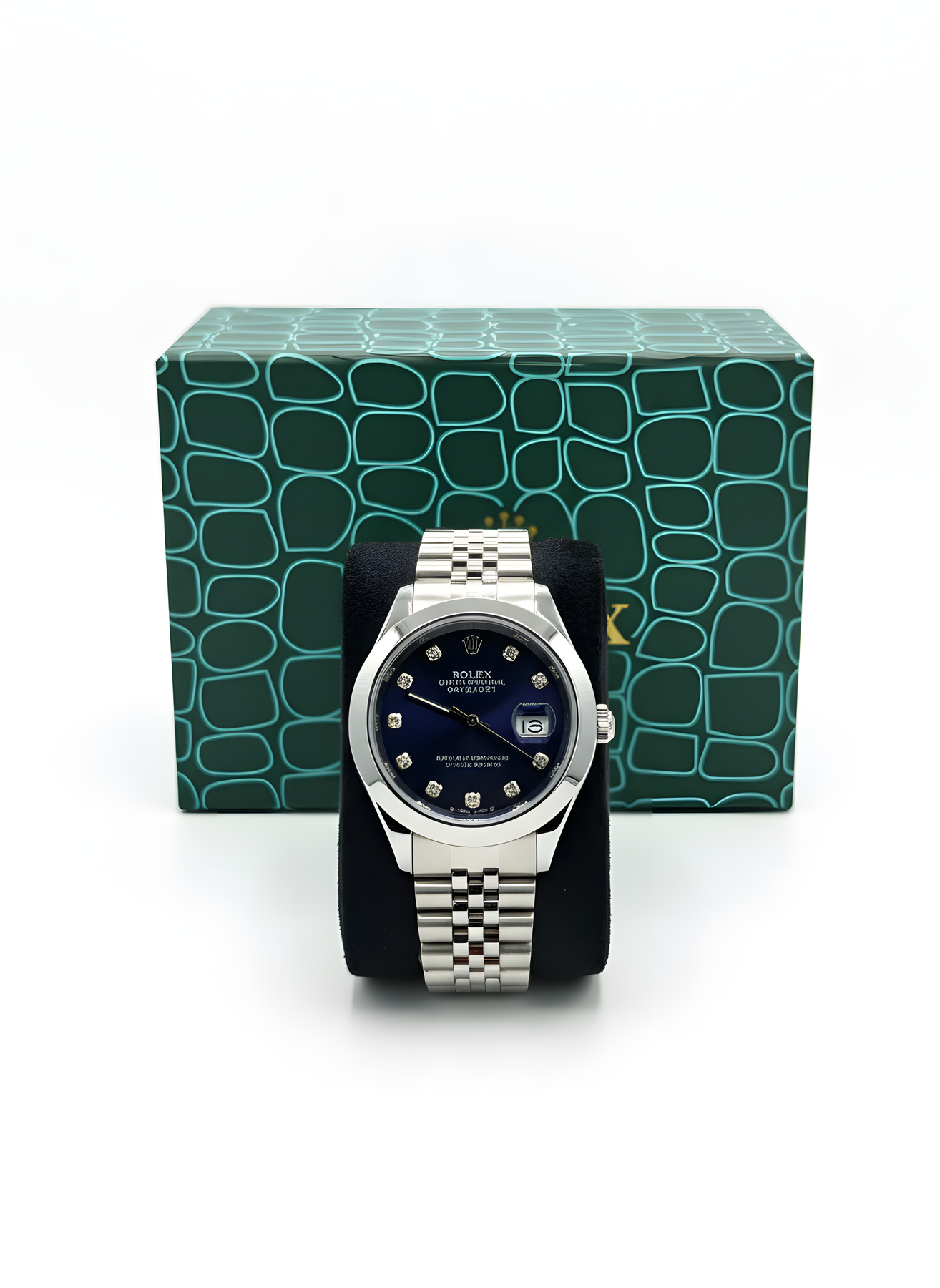 Jubilee Bracelet: The distinctive five-piece link Jubilee bracelet, known for its comfort and sophisticated aesthetic, complements the watch's luxurious appeal.